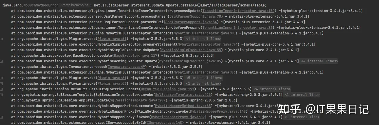 java.lang.NoSuchMethodError: net.sf.jsqlparser.statement.update.Update.getTable()Lnet/sf/jsqlparser/schema/Table;